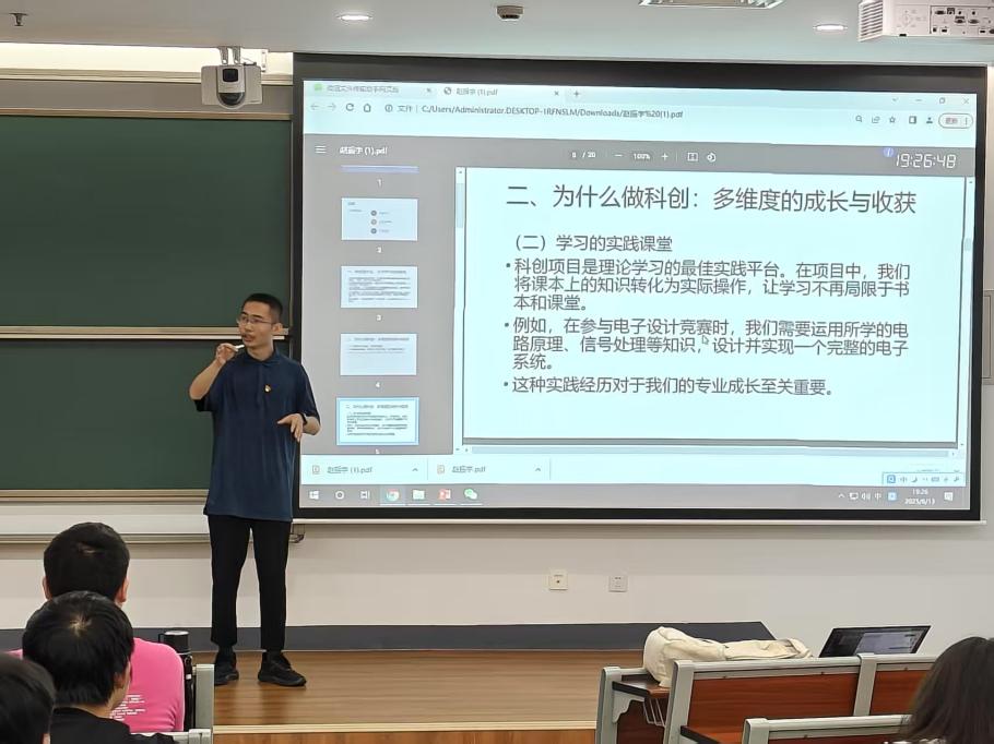 为帮助低年级学生做好学业规划与职业发展准备,了解保研及就业的最新政策及相关经验,集成电路学院于6月13日在天目湖校区开展“芯光璀璨,共话未来”保研就业经验分享会,活动邀请2021级三位优秀本科生代表韩栋钧、赵振宇、刘阳进行专题分享,2023级、2024级全体学生参与。