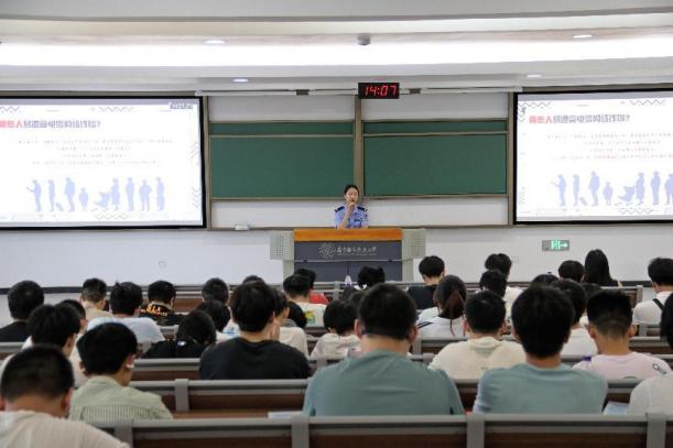为增强学生的金融安全意识,深化诚信感恩教育,筑牢校园安全防线,6月13日,集成电路学院2023级、2024级本科生在天目湖校区开展筑牢青春防线:金融安全与诚信教育。溧阳市公安局古县派出所民警滕若兮应邀出席并作主题分享,2023级、2024级全体学生参与。