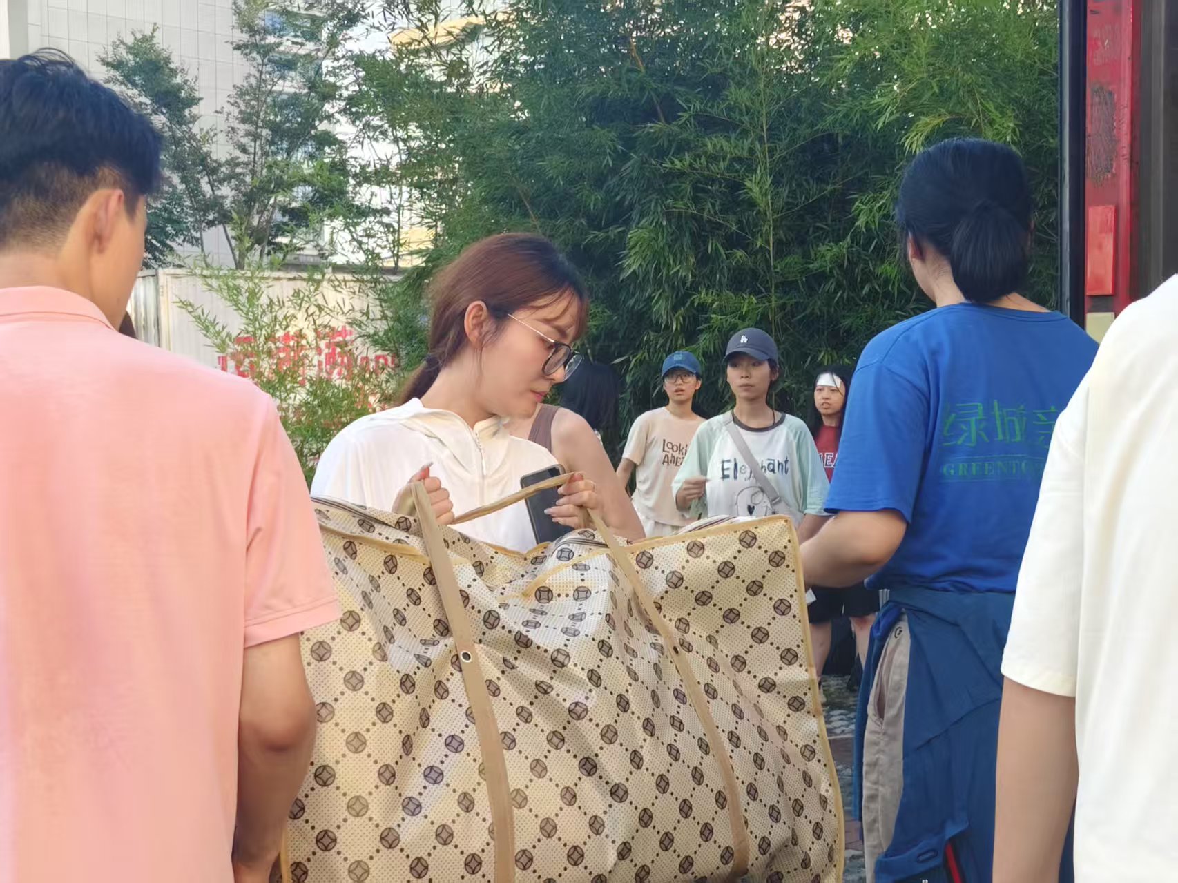 搬迁当日,两校区联动高效运转。学院组建了由20余名学生骨干组成的“志愿先锋队”,精准对接运输车辆、行李装卸及入住引导;后勤部门调配3辆专用接驳车,提供“点对点”运输服务;保卫处优化交通动线,确保搬迁车队畅通无阻。校院领导亲临现场指导工作,并为同学们准备了早餐能量包、冰镇西瓜、解暑茶饮等暖心物资。班主任老师第一时间深入学生新宿舍关怀学生所需。