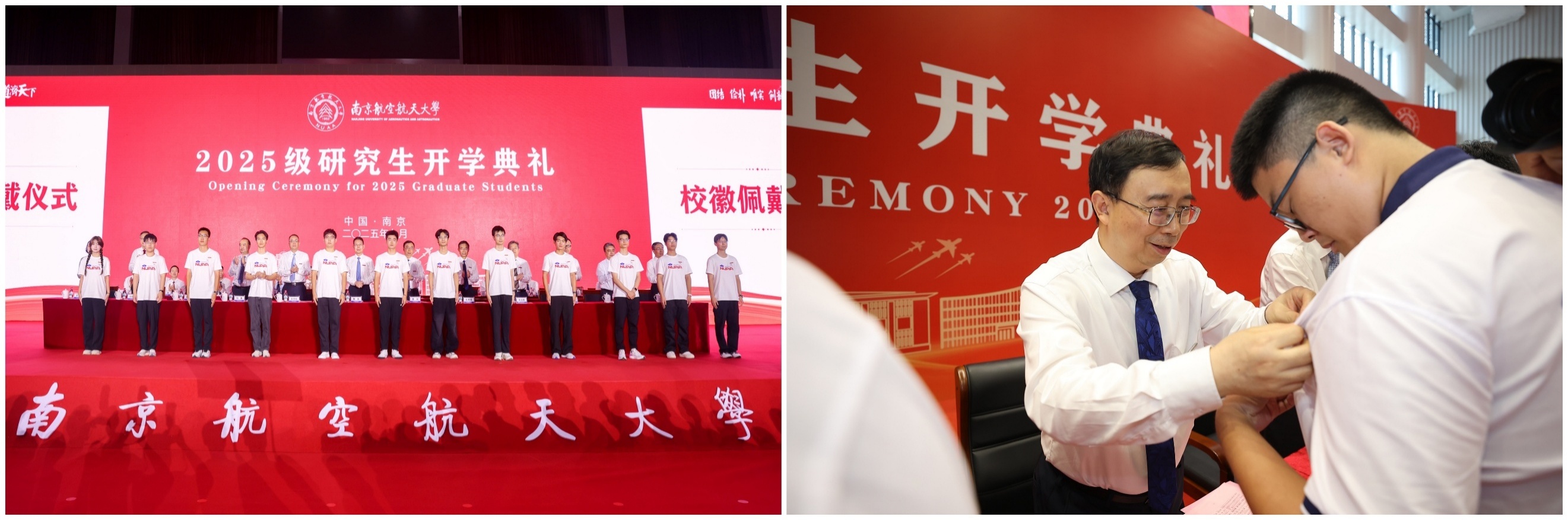 在学校2025级新生开学典礼上,我院研究生学生代表周鑫上台发言,展现集成电路学子的思考与风采。张正、王子杰同学作为新生代表上台佩戴校徽,新一代南航“芯”青年正式启航。