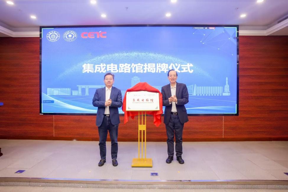 随后,郝跃和吴启晖共同为我院集成电路馆揭牌。集成电路馆是在学校党委的长期关心与指导下,在航天九院、中国电科58所等兄弟单位的大力支持下,由集成电路学院依托重点实验室精心建造而成,集中展现了南航集成电路人奋斗足迹的珍贵缩影,更是一扇通向微观世界、展现“国之重器”的重要窗口。