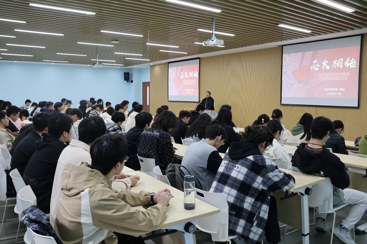 集成电路学院党委书记黄彬讲授《芯火相传——从中国集成电路奋斗史看科技自立自强之路》专题党课。他从世界第一块集成电路和中国第一块集成电路的发明故事切入,深情回顾了以王守觉、王守武院士,王阳元院士,邓中瀚院士,徐秋霞研究员和陈云霁、陈天石兄弟为代表的几代科研工作者,在技术封锁、基础薄弱的艰难条件下勇攀科技高峰、实现多项突破的奋斗足迹,生动呈现了中国集成电路领域“芯火相传”、矢志创新的精神图谱。课后,黄彬带领全体学员走进集成电路馆开展现场教学,通过丰富的图文资料与实物展品,帮助同学们更加深刻理解“芯火相传”的精神内核。他勉励同学们要努力传承、自觉践行科学家精神,将个人理想融入国家发展大局,为实现高水平科技自立自强贡献青春力量。