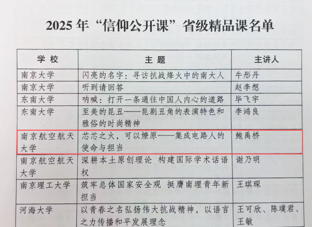 近日,共青团江苏省委发布《关于公布2025年“信仰公开课”省级精品课评选结果的通知》。经高校推荐、团省委评选,色情卡通 2023级硕士研究生鲍禹桥“芯芯之火,可以燎原——集成电路人的使命与担当”主题课程入选省级精品课。该评选旨在推动全省高校共青团充分发挥在高校学生思想政治工作中的主力军作用,教育引导高校团员青年坚定不移听党话、跟党走,争做有理想、敢担当、能吃苦、肯奋斗的新时代好青年。