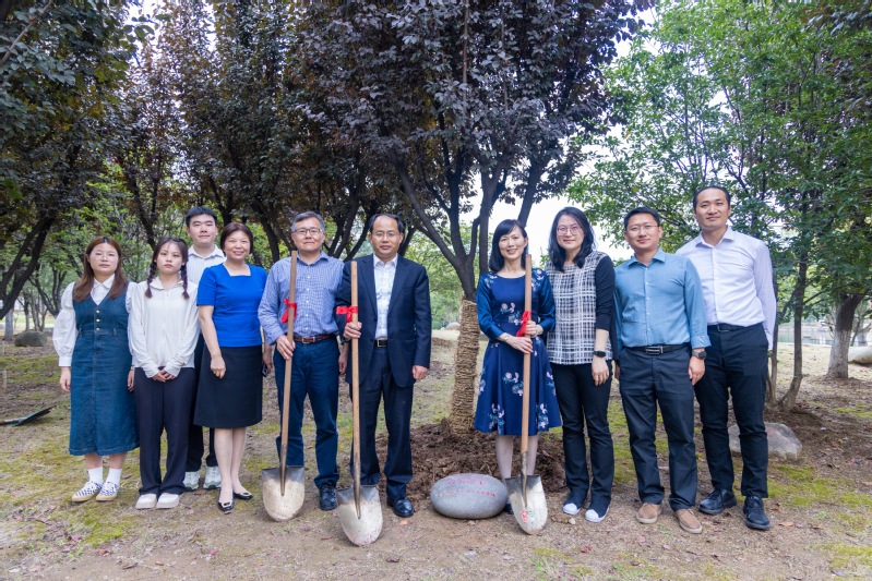 报告会前,刘明院士与我院教师代表进行座谈,就集成电路学科建设情况进行指导。报告会后,刘明院士与师生代表共同在砚湖边院士林植树。