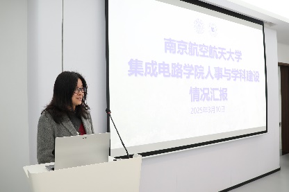 执行院长刘伟强作学院2025年重点工作报告,深入剖析了学院面临的形势与机遇、问题与挑战,围绕高质量党建引领、高水平学科建设、高水平师资队伍建设、创新人才培养体系构建、特色科研团队凝练、高层次国际合作交流等方面,系统谋划了全年重点工作。随后,刘伟强传达学校2025年人事人才工作交流研讨会精神,围绕职称评审改革、绩效薪酬分配改革、准长聘改革、管理队伍建设改革和人才引培制度改革五个方面,详细解读了人事人才重点改革举措。他强调,全体教职工要认真落实学校干部教师大会精神,紧扣全面深化改革主线,进一步统一思想、凝聚共识、汇集力量,为建设空天特色的一流集成电路学院努力奋斗。