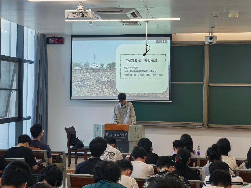 24级中心组生活部部长段俊言解读了学校劳动教育政策的核心目标与实施细则,介绍了“绿野芯踪”实践基地的运营机制及轮岗劳动的具体要求。学院教学办周劲夫老师进行专题授课,周老师毕业于爱尔兰都柏林大学园艺专业,曾任国际知名园艺企业负责人,主持多项大型园林改造项目,具备丰富的理论与实践经验。他从农业科学视角出发,结合全球园艺案例,生动阐释劳动教育对个人成长与社会发展的双重价值,并现场指导学生掌握农作物生长规律与养护技巧。