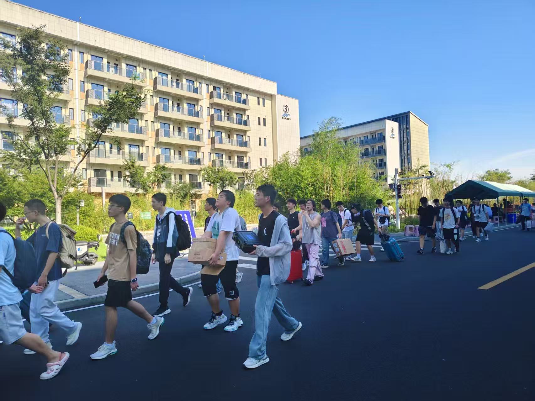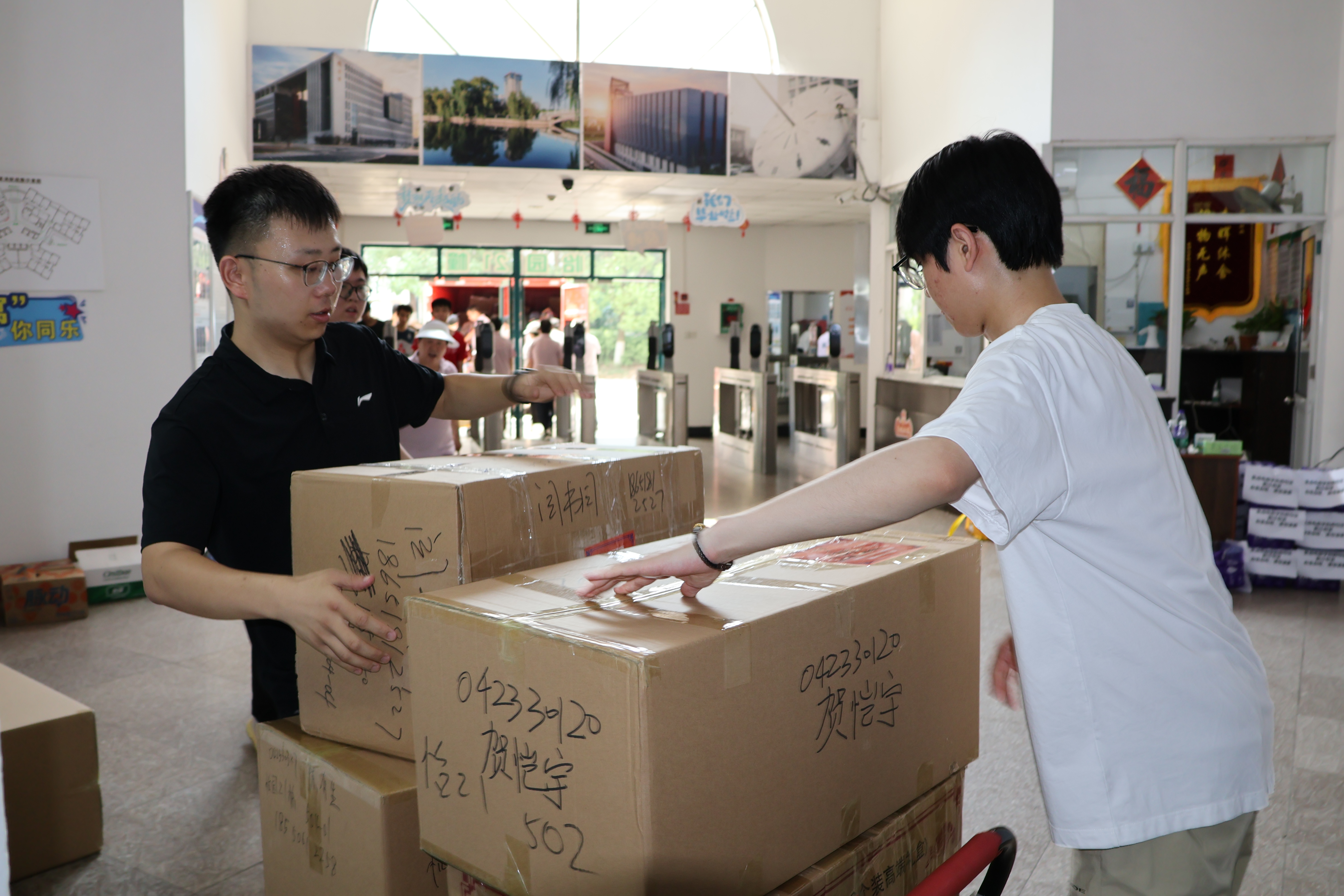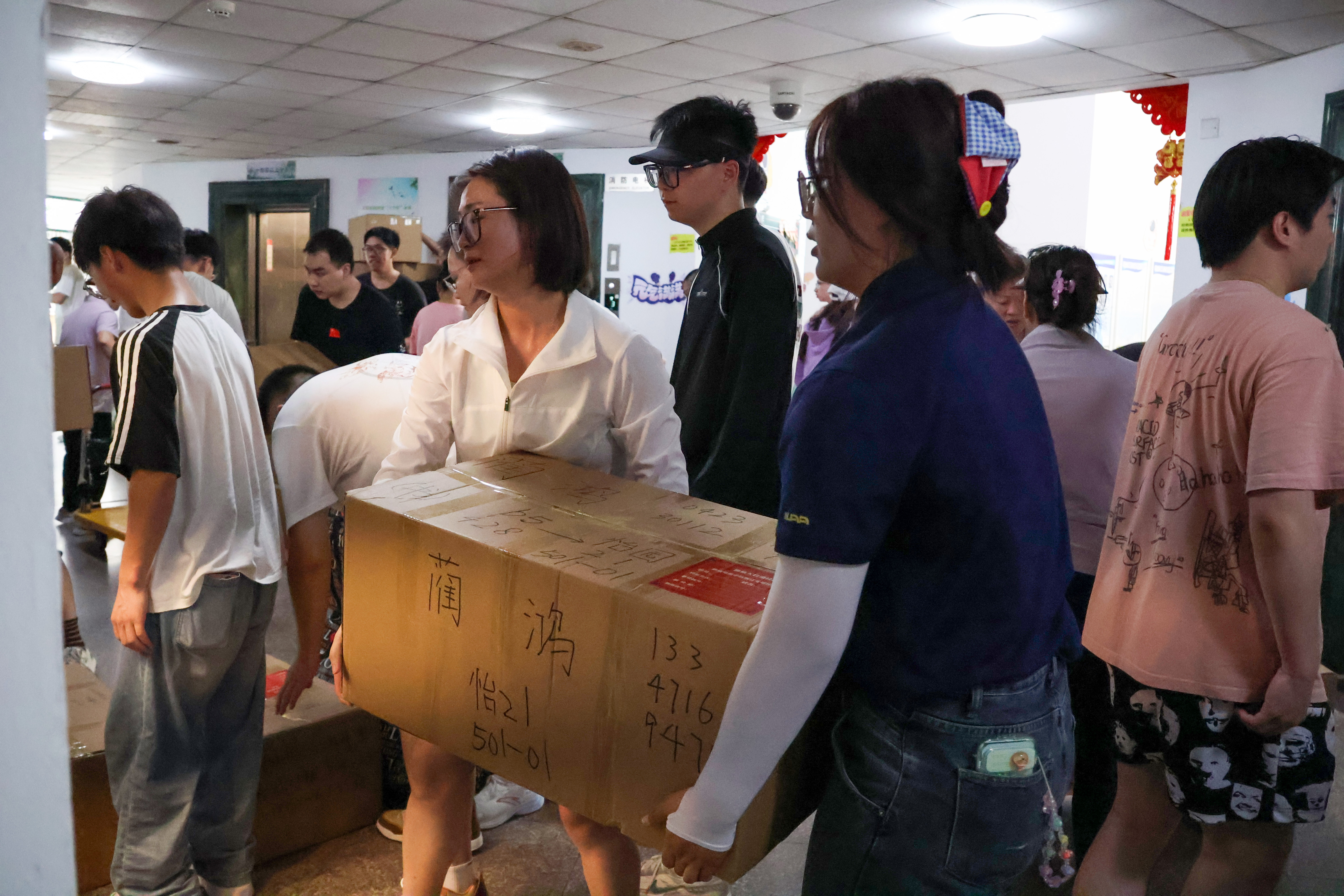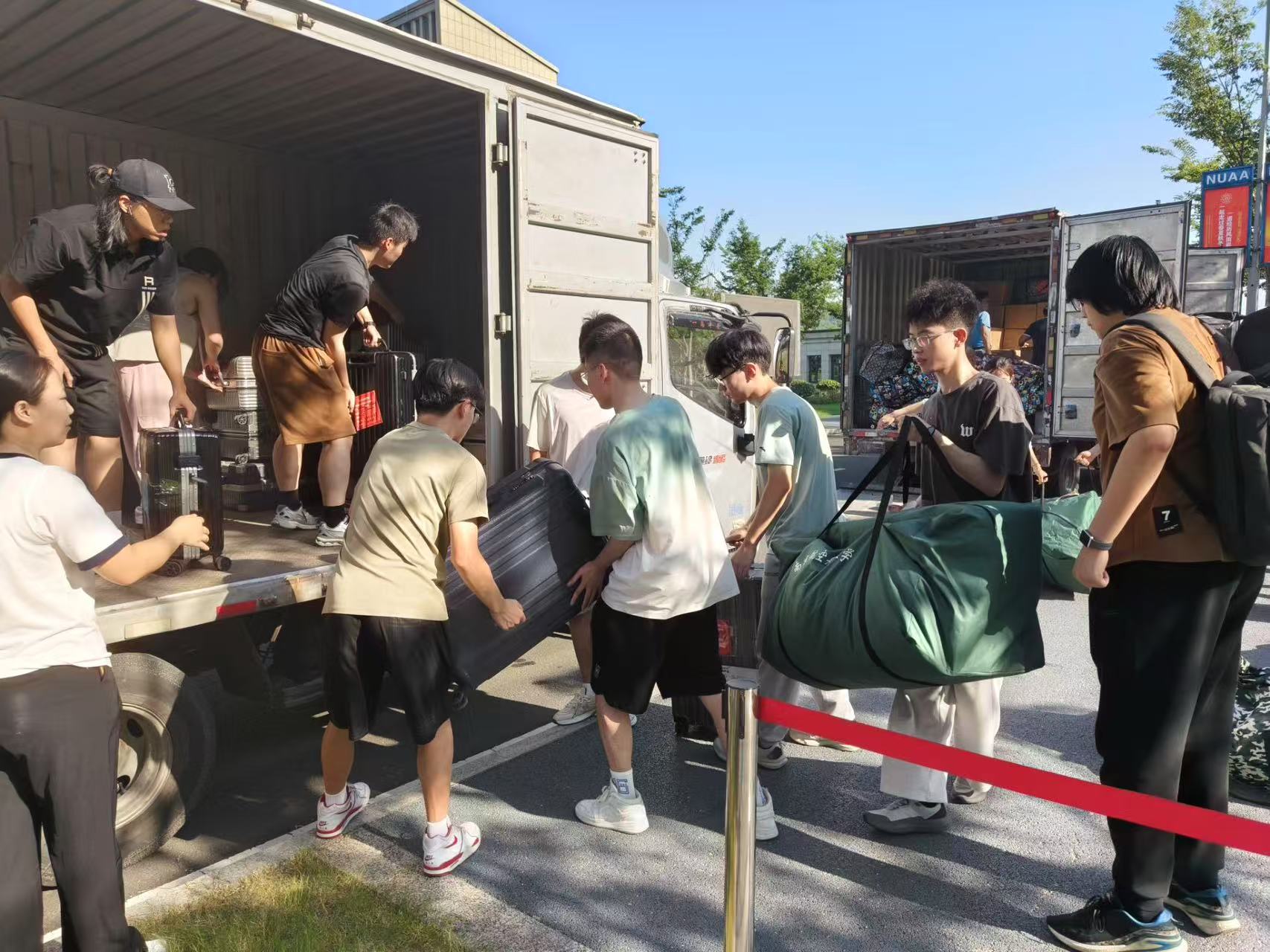 搬迁当日,两校区联动高效运转。学院组建了由20余名学生骨干组成的“志愿先锋队”,精准对接运输车辆、行李装卸及入住引导;后勤部门调配3辆专用接驳车,提供“点对点”运输服务;保卫处优化交通动线,确保搬迁车队畅通无阻。校院领导亲临现场指导工作,并为同学们准备了早餐能量包、冰镇西瓜、解暑茶饮等暖心物资。班主任老师第一时间深入学生新宿舍关怀学生所需。