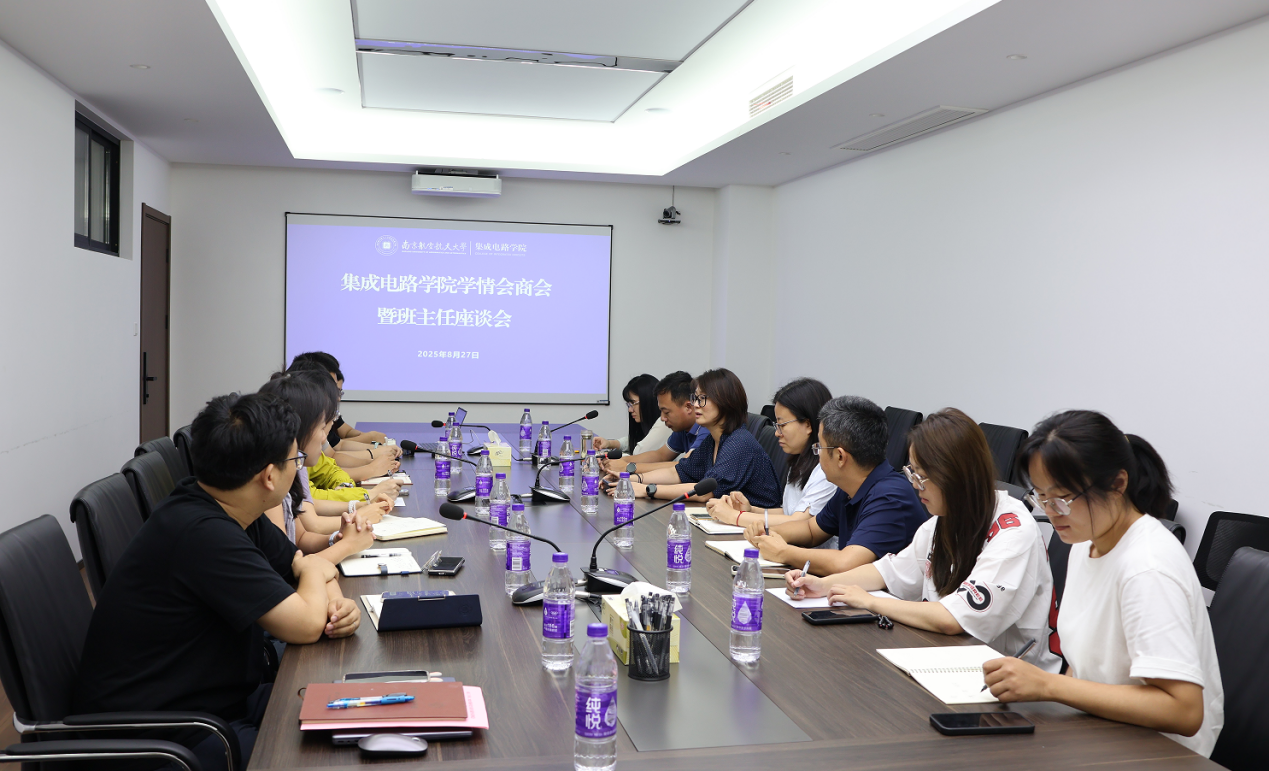 为扎实推进本科生学风建设、进一步整合育人资源、形成育人合力,2025年8月27日,集成电路学院召开学情会商会暨班主任座谈会。学院党委副书记周聚、副院长崔益军、院长助理葛芬、集成电路系副主任王佑、教学办主任刘惠欣、各年级班主任和本科生辅导员参加会议。会议由周聚主持。