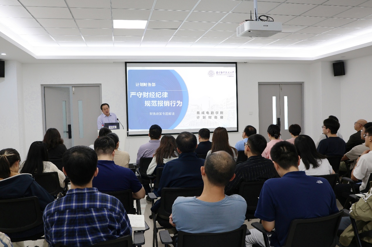 为巩固拓展深入贯彻中央八项规定精神学习教育成果、推进作风建设常态化长效化,帮助学院青年教师筑牢思想根基、明确行为边界、规划职业发展,10月14日,集成电路学院全新打造的“芯火讲堂”系列培训在学院8402会议室正式开讲。首讲邀请了学校计划财务部部长张丕宏作专题辅导报告,学院全体教职工、各课题组学生代表参加。活动由学院党委书记黄彬主持。