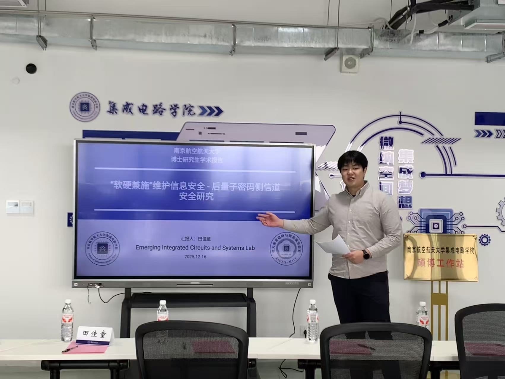 揭牌仪式后,我院博士研究生田佳童作题为《“软硬兼施”维护信息安全——后量子密码侧信道安全研究》的首场学术报告。两校区学生围绕科研入门、发展方向等问题展开热烈交流。