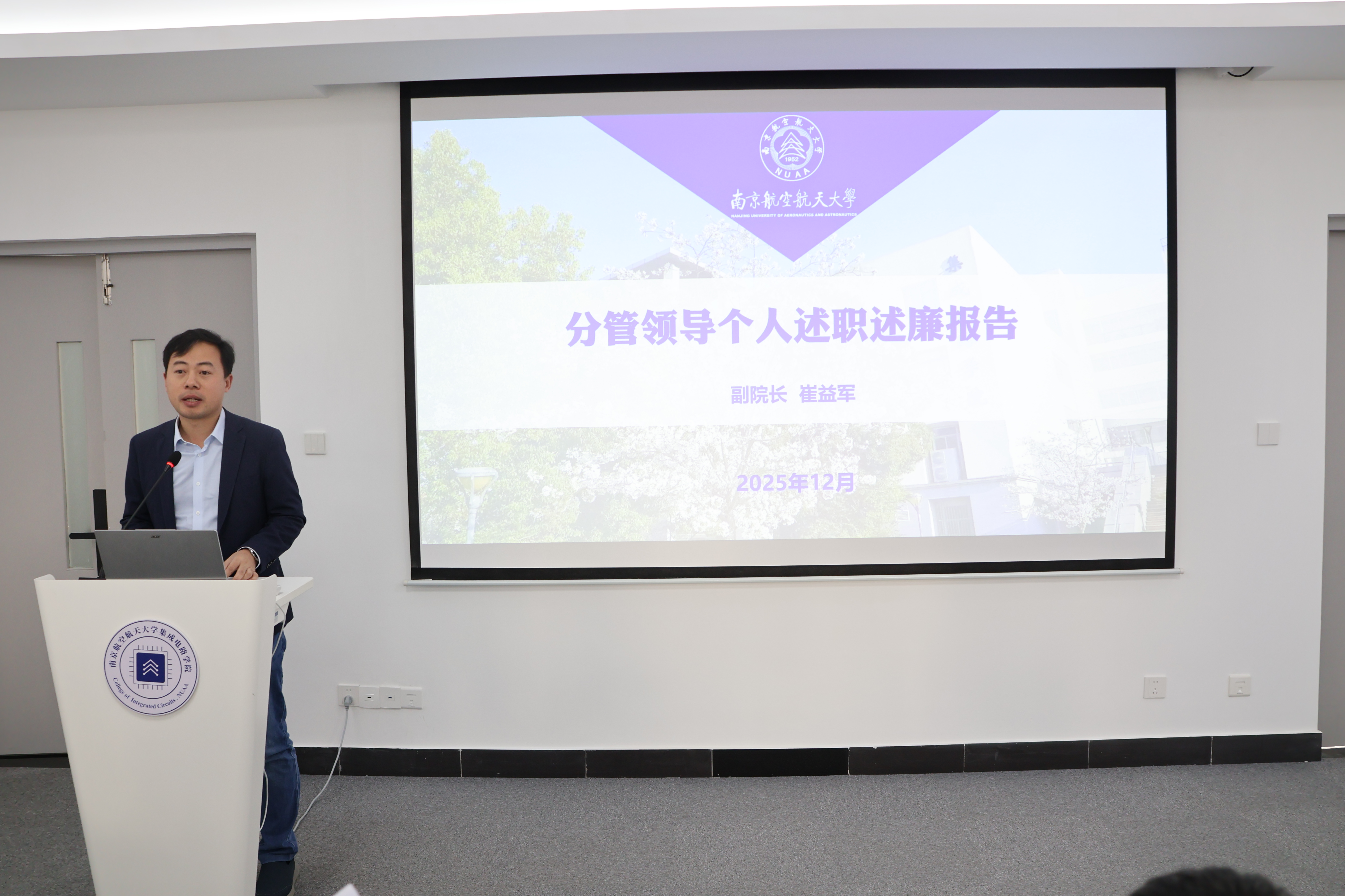 执行院长刘伟强作学院年度工作总结及个人述职述廉报告,全面总结了学院本年度在学科建设、人才培养、师资队伍和科学研究等方面取得的突出成绩。他指出,学院在过去一年,紧密围绕国家战略需求,各项事业实现了跨越式发展,取得了一系列标志性成果。学院要坚持“空天特色鲜明的一流集成电路学院”发展目标,以更高标准推动事业发展提质增效。